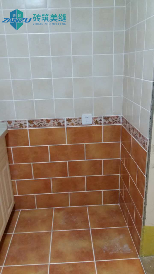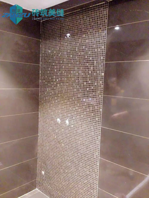 由图中细节可看出,借助高超的施工水平勾描的瓷缝,线条是均匀流畅的,与瓷砖本身完美贴合。