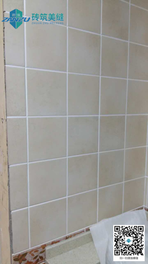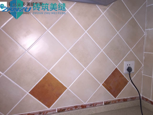 本案的美缝施工相对比较简单,瓷砖为80*80的浅色地砖,也在业主的要求下,对踢脚线位置进行了精细处理,因为踢脚线为深色,与浅色地砖产生明显的对比,