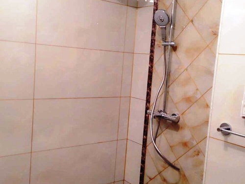 在本案的施工中,为了支撑欧式风格的空间奢华感,我们在为墙地砖做美缝时,特别仔细观察了拼砖部分的瓷砖纹路和走向。由于地砖面积相对较大,花纹种类繁多且复杂,十分考验美缝技师的美缝施工技术。