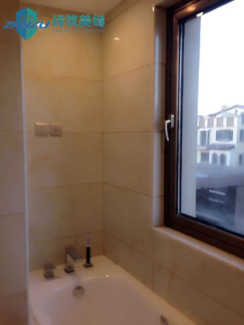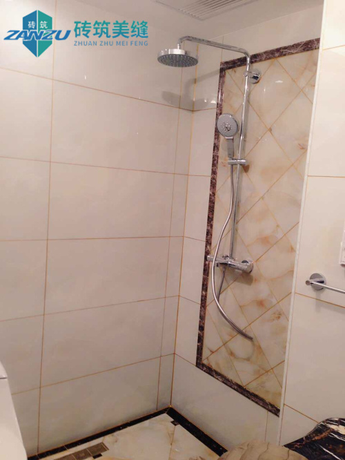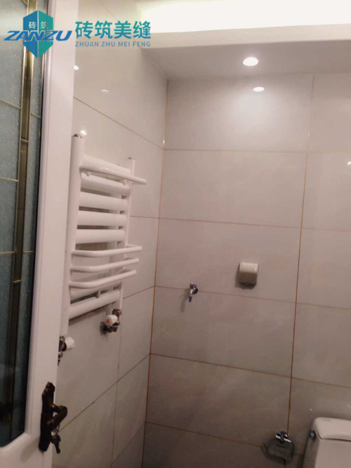 其实单就操作而已,本案的美缝施工相对比较简单,瓷砖为80*80的浅色地砖,也在业主的要求下,对踢脚线位置进行了精细处理,因为踢脚线为深色,与浅色地砖产生明显的对比,因此走线不均极易看出来,且金色在黑色的砖体上很显眼,我们的施工师傅在这里花了很大的功夫,目的就是为了尽量平整,让瓷缝与瓷砖墙面融为一体,更显得优雅。